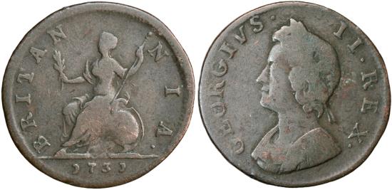 Great Britain, farthing dated 1731, struck under King George II. Fine condition. S 3720; KM 572. 3,77 g. Protocol no. 4999