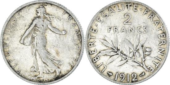| | Coin, France, Semeuse, 2 Francs, 1912, Paris, , Silver, KM:845.1 | | | Semeuse, Figure sowing seed, Leafy branch divides denomination and date, Without mint mark. | | FEATURES |