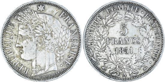 | | Coin, France, Cérès, 5 Francs, 1851, Paris, , Silver, KM:761.1 | | | Cérès, Liberty head with grain wreath left, Denomination within wreath | | FEATURES |