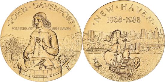 | United Kingdom, Medal, John Davenport, Founder of New Haven, History, 1988 |