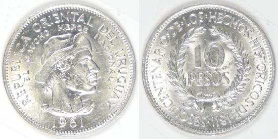 URUGUAY - Republic, 1961, 10 Pesos, BU