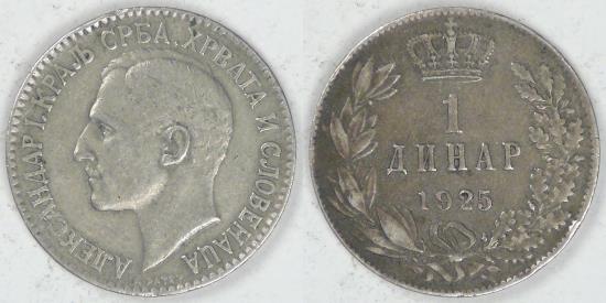 YUGOSLAVIA - Kingdom of the Serbs, Croats and Slovenes, 1925 (b), Alexandar I, Dinar, EF