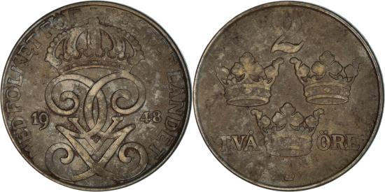 | | Coin, Sweden, Gustaf V, 2 Öre, 1948, , Iron, KM:811 | | | Crowned monogram divides date, Value and crowns, World War II issues. | | FEATURES |