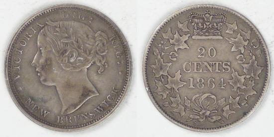 | CANADA - New Brunswick, Victoria, 1864, 20 Cents, Choice VF |