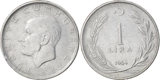| | Coin, Turkey, Lira, 1964, , Stainless Steel, KM:889a.1 | | | Head of Kemal Atat?rk left, Value and date within wreath | | FEATURES |