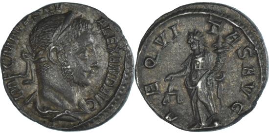 | | Coin, Severus Alexander, Denarius, 222-228, Rome, , Silver, RIC:127 | | | Bust right with laurel wreath., Aequitas standing left with scales and cornucopia. | | FEATURES |