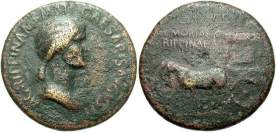 Agrippina, Sr., mother of Caligula. � sestertius (35 mm, 27.12 g). Draped bust of Agrippina Senior right / Carpentum drawn left, by two mules. RIC 55 (Caligula); BMC 85. Good Fine.