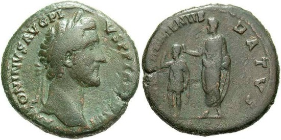 Antoninus Pius. A.D. 138-161. Æ sestertius. Fine, green patina.