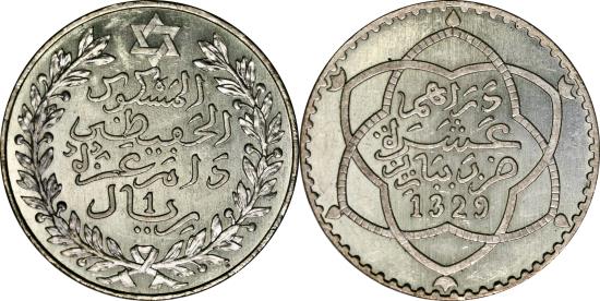 Morocco, rial 1911 (AH 1329)