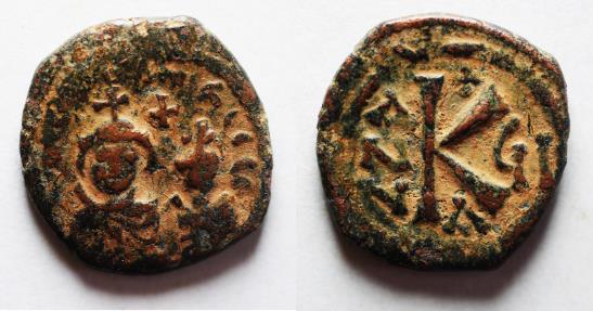 Heraclius, with Heraclius Constantine. 610-641. Æ Half Follis