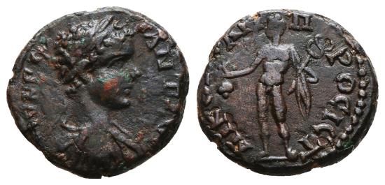 Obv/ M AVP KA ANTΩNIN. Head bare to right.