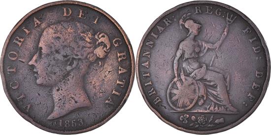 | | Coin, Great Britain, Victoria, 1/2 Penny, 1853, , Copper, KM:726 | | | Head left, Britannia seated right | | FEATURES |