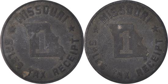 | United States of America, Token, Missouri, Sales Tax Receipt, , Zinc |