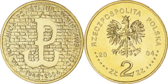 | | Coin, Poland, 2 Zlote, 2004, Warsaw, , Brass, KM:496 | | | Crowned eagle with wings open, Resistance symbol on brick wall | | FEATURES |