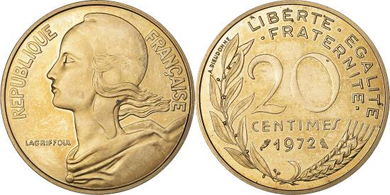 | | Coin, France, Marianne, 20 Centimes, 1972, , Aluminum-Bronze, KM:P446 | | | KM#930. | | FEATURES |