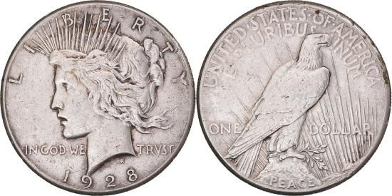 | | United States, 1 Dollar, Peace, 1928, Philadelphia, Silver, , KM:150 | | | Liberty Head left., Eagle facing right perched on rock inscribed “PEACE”. | | FEATURES |