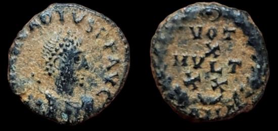 Arcadius. AE4 Struck 406-8 AD. Antioch mint. off. 4