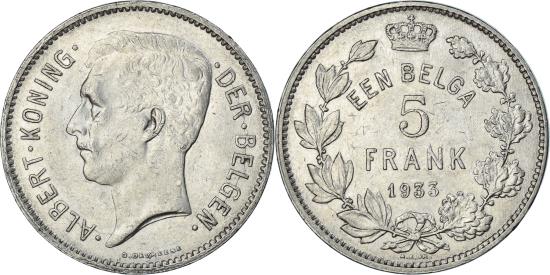 | | Coin, Belgium, 5 Francs, 5 Frank, 1933 | | | FEATURES |