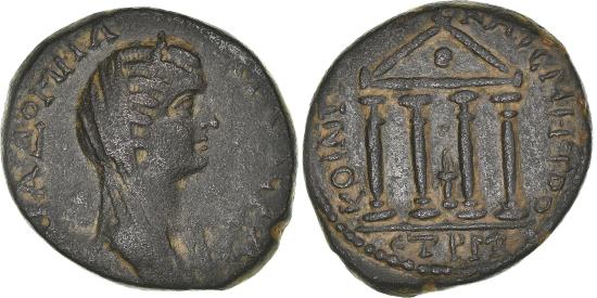 | | Coin, Pontos, Julia Domna, Tetrassarion, 209-210, Neocaesarea, , Bronze | | | Veiled and draped bust of Julia Domna to right, wearing stephane., Flaming altar within tetrastyle temple., Çizmeli 102 (D4/R17). From a European collection, acquired before 2021., IOYΛIA ΔOMNA AYΓOYCTA, KOI ΠON NEOKAI MHTPO / ET PMR | | FEATURES |