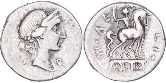 | | Coin, Aemilia, Denarius, 114-113 BC, Rome, , Silver, Crawford:291/1 | | | Mn. Aemilius Lepidus | | FEATURES |