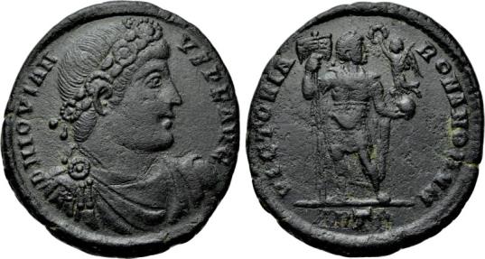 Laurel and rosette-diademed, draped and cuirassed bust right.