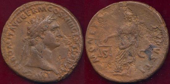 Issued under DOMITIAN AE AS 29mm, 11.21 grams Bust of Domitian facing right, IMP CAES DOMIT AVG GERM COS XIIII CENS PERP P P, laur. bust right
