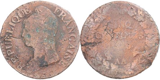 Coin, France, Dupré, 5 Centimes, Metz, , Copper, Gadoury:126/126aCoin, France, Dupré, 5 Centimes, Metz, , Copper, Gadoury:126/126a