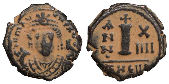 MAURICE TIBERIUS. 582-602 AD. Æ Decanummium. Antioch mint. Year 14 (595/6 AD).
