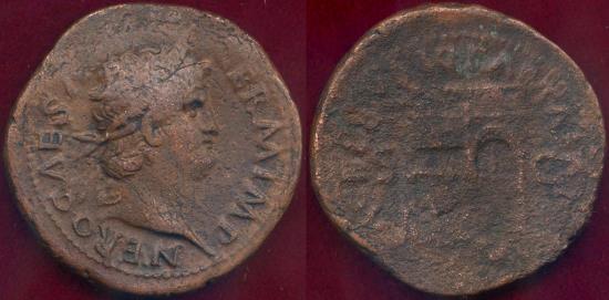 AE AS 29mm, 10.7 grams Laureate NERO bust facing right IMP NERO CAESAR AVG Rev: Temple of Janus with inscription around S-C