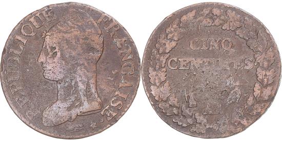 Coin, France, Dupré, 5 Centimes, AN 8/5, Metz, , Copper, Gadoury:126aCoin, France, Dupré, 5 Centimes, AN 8/5, Metz, , Copper, Gadoury:126a