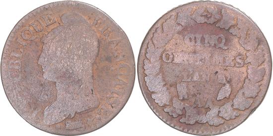 Coin, France, Dupré, 5 Centimes, AN 8/5, Metz, , Copper, Gadoury:126aCoin, France, Dupré, 5 Centimes, AN 8/5, Metz, , Copper, Gadoury:126a