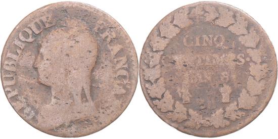 Coin, France, Dupré, 5 Centimes, AN 8, , Copper, Gadoury:126aCoin, France, Dupré, 5 Centimes, AN 8, , Copper, Gadoury:126a
