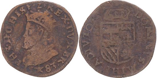 | Coin, Spanish Netherlands, Philip II, Liard, 1583, Maastricht, , Copper |