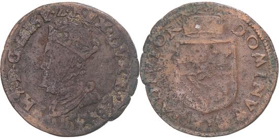 | Coin, Spanish Netherlands, Philip II, Liard, 1587, Maastricht, , Copper |