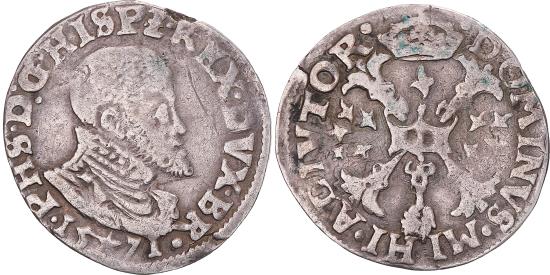 | Coin, Spanish Netherlands, Philip II, 1/10 Ecu, 1571, Maastricht, |