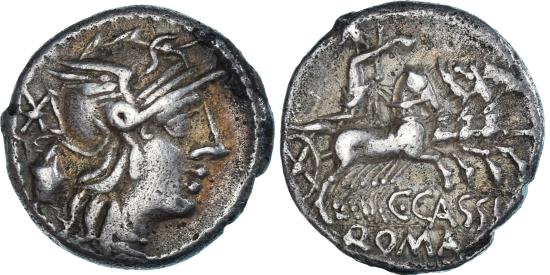 | | Coin, Cassia, Denarius, 126 BC, Rome, , Silver, Crawford:266/1 | | | C. Cassius | | FEATURES |