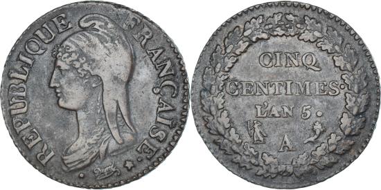 | | Coin, France, Dupré, 5 Centimes, AN 5, Paris, , Copper, Gadoury:126 | | | FEATURES |