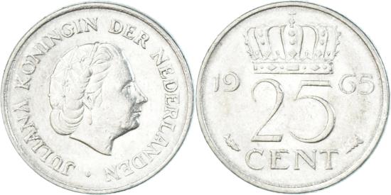 | Coin, Netherlands, 25 Cents, 1965 |