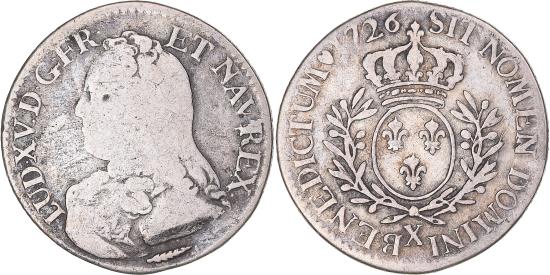 | Coin, France, Louis XV, 1/5 Écu aux branches d'olivier, 1726, Amiens |