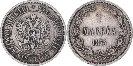 | | Coin, Finland, Alexander II, Markka, 1874, Helsinki, , Silver, KM:3.2 | | | FEATURES |