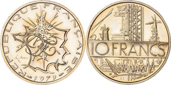 | | Coin, France, Mathieu, 10 Francs, 1979, Paris, , Nickel-brass, KM:940 | | | Mathieu, Stylized map of france, High tension towers and electric transmission wires, denomination at center | | FEATURES |