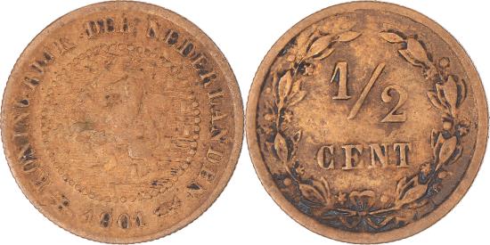 | | Coin, Netherlands, Wilhelmina I, 1/2 Cent, 1901, , Bronze, KM:109.2 | | | Crowned rampant lion left on field of 17 small shields all within beaded circle, date below, Crowned rampant lion left on field of 17 small shields all within beaded circle, date below, Privy mark: Halberd, KONINGRIJK DER NEDERLANDEN | | FEATURES |
