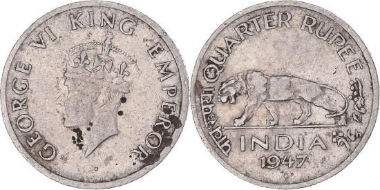 | Coin, India, 1/4 Rupee, 1947 |