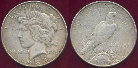 1934 PEACE DOLLAR XF45