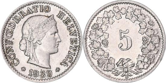| Coin, Switzerland, 5 Rappen, 1939 |