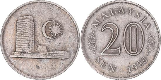 | Coin, Malaysia, 20 Sen, 1988 |