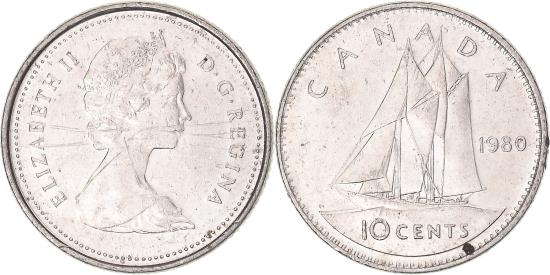 | Coin, Canada, 10 Cents, 1980 |