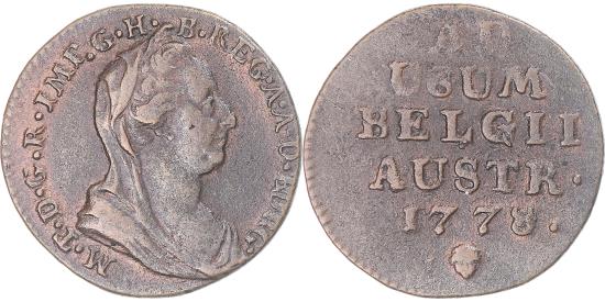 | | Coin, Austrian Netherlands, Maria Theresa, Liard, Oord, 1778, Brussels | | | Veiled bust right, 4-Line inscription, date and mint mark below | | FEATURES |