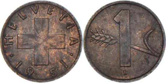 | Coin, Switzerland, Rappen, 1951 |