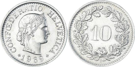 | Coin, Switzerland, 10 Rappen, 1969 |